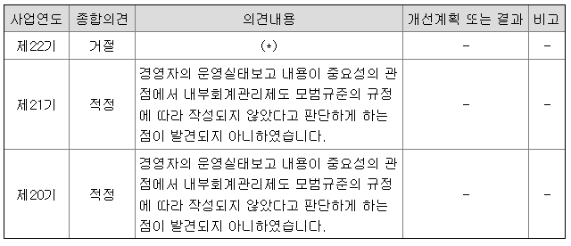 (*)우리는 비덴트의 전환사채, 신주인수권부사채, 전환우선주 등을 통한 자금조달 과정에서 적합한 통제활동이 설계되고 운영되었는지에 대한 감사증거를 입수할 수 없었습니다.